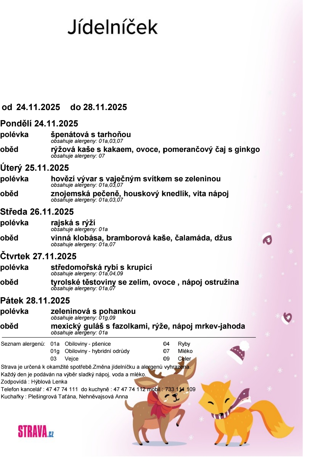Odhlášení či přihlášení obědů již se stravujících žáků telefonicky na čísle: